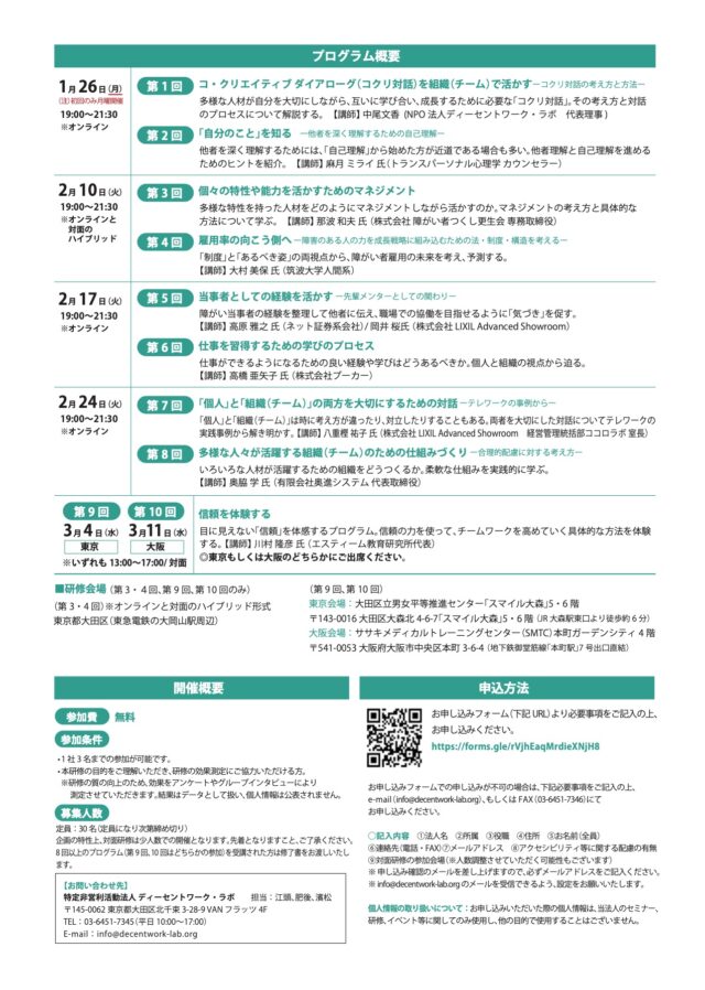 企画の特性上、対面研修は少人数での開催となります。先着となりますこと、ご了承ください。